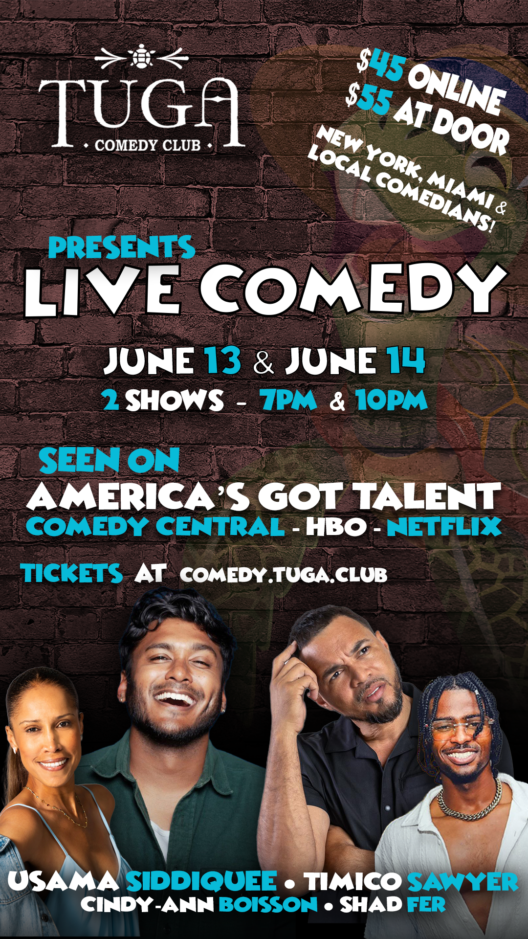 TUGA Comedy Club Presents Usama Siddiquee, Timico Sawyer, Cindy-Ann Boisson & Shad Fer!